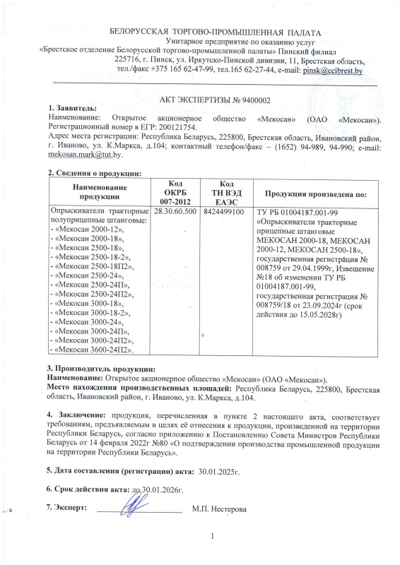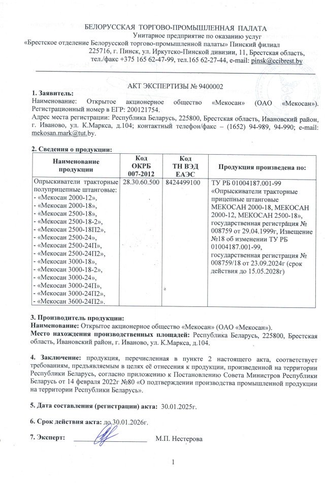 Опрыскиватель "Мекосан 3000-24П2"