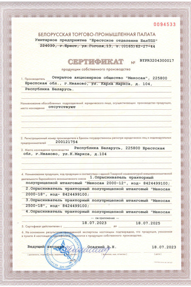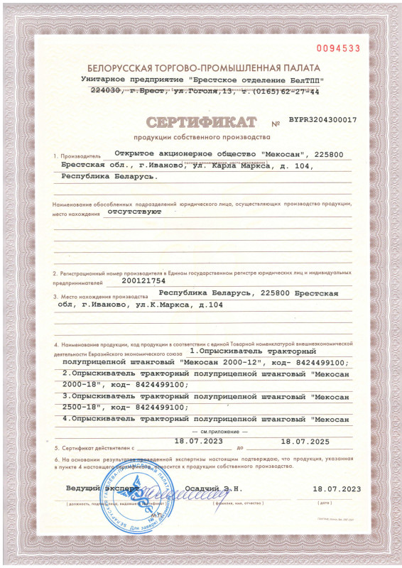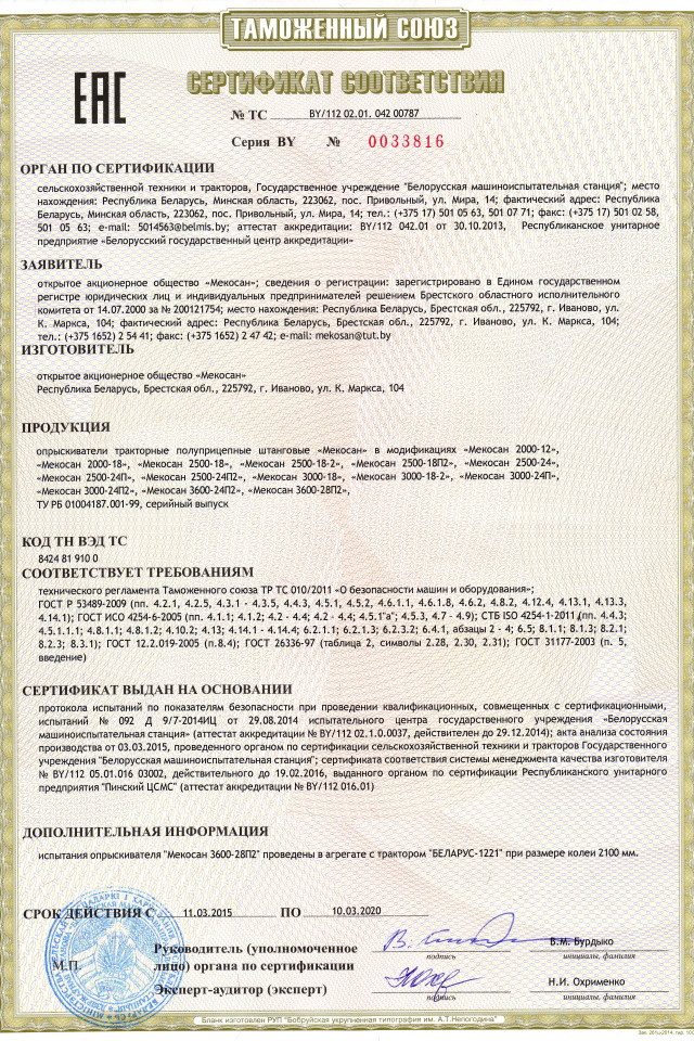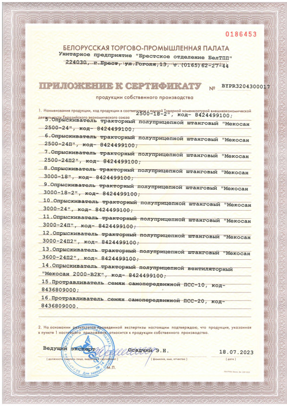 Опрыскиватель "Мекосан 2500-18-2"